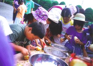 どんぐりくらぶ ★ '02年度 親子キャンプ '02.8.3〜4 学童さんたちに乗っ取られてしまいました。 それぞれの学校の新しい友達同士、 新しい出会いがたくさんありました。