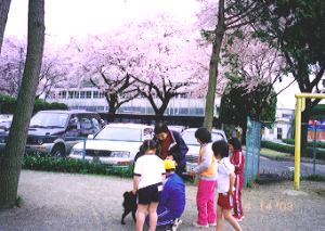 < 園庭前では、今年も揺るぎない「さくら」‥ >