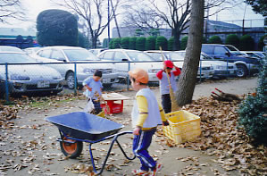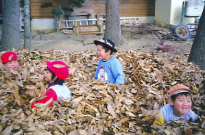 < 落ち葉じゅうたんの出来あがり >