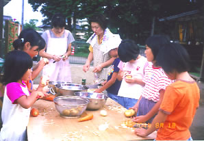 ![]() < パパ達も手慣れたもの。 後片付けも手際良く完了 >