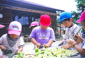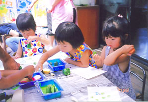 < 野菜スタンプはピーマンが人気 >