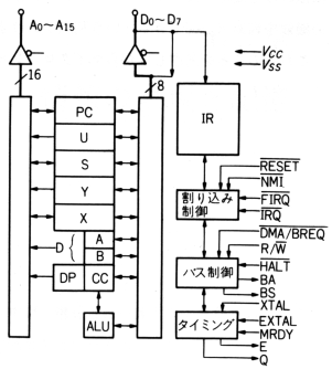 ![]() < 6809 ブロック図 (モトローラ社資料より) >